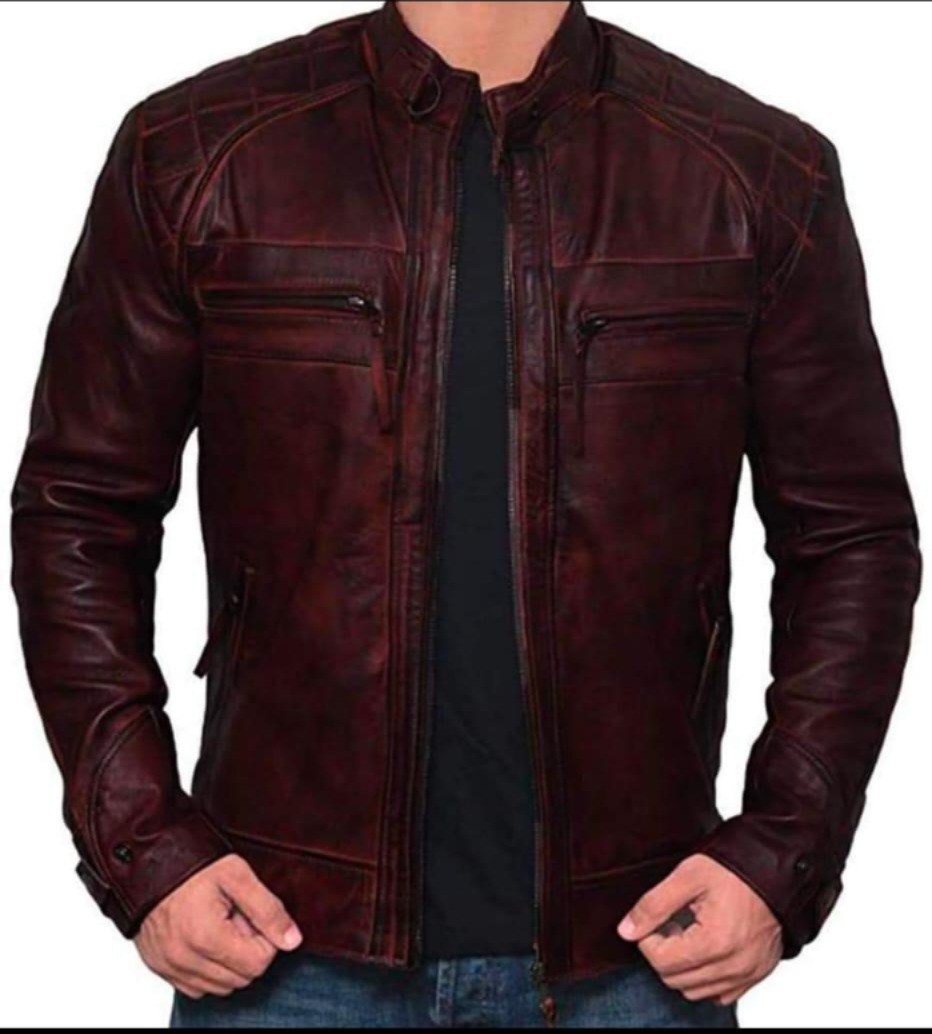 Men’s Maroon Slim-Fit Leather Biker Jacket